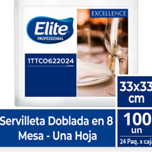 SERVILLETA ELITE DE LUJO 33X33 HOJA SENCILLA DOBLADA EN 8